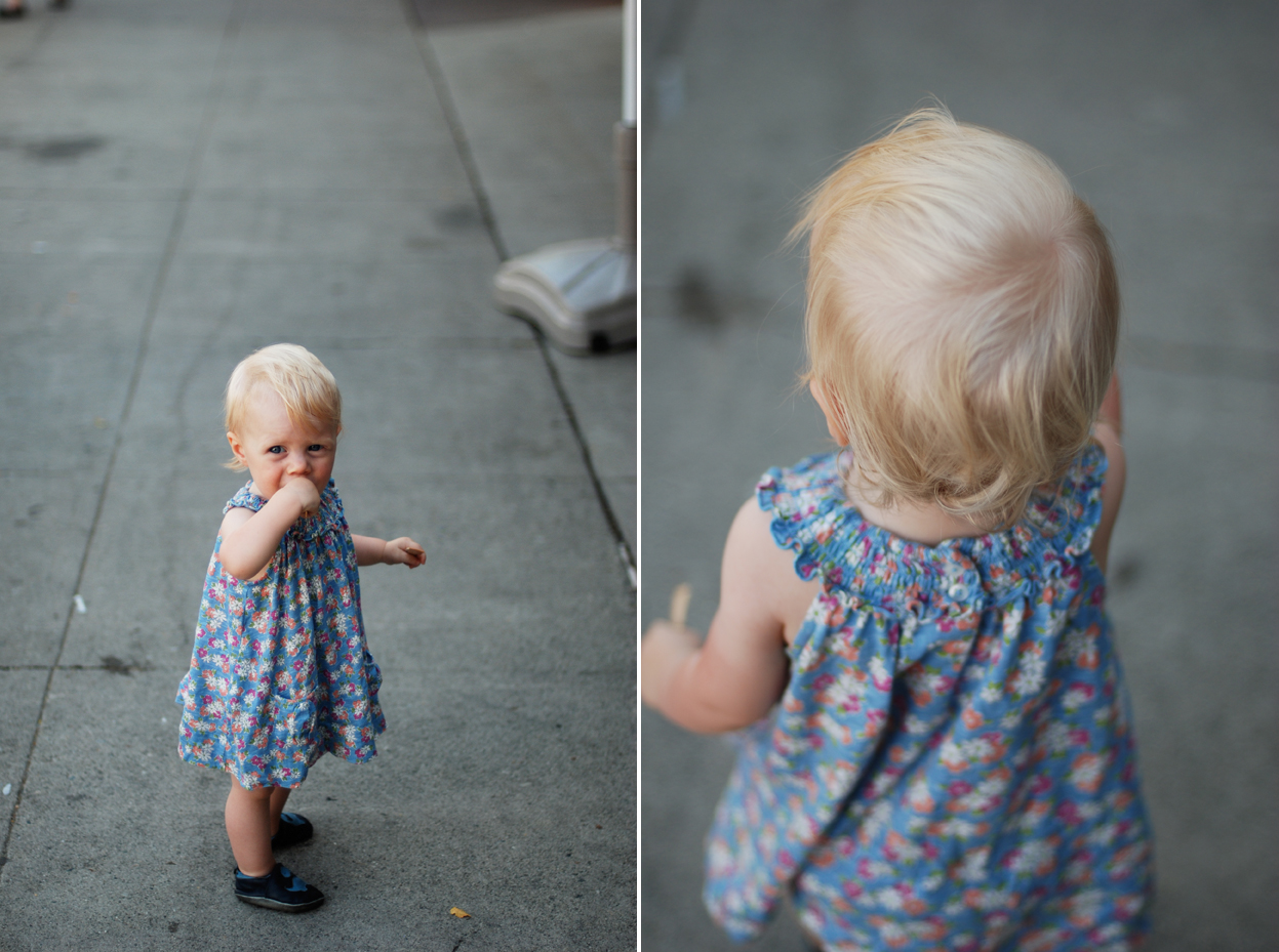 We quickly lost Banyan in the neighbouring throng of kids. He would disappear into the mesh of bodies and reappear for a brief moment only to vanish again like a magic trick. At one point, Banyan, completely oblivious, wandered into the middle of a race and was trampled underfoot. The camp leader peeled him off the sand and looked around wondering where on earth this stray kid came from. She dusted him off and sent him on his way. Banyan thrived off the mass energy of the kids. Georgia on the other hand, slept for most of the time under a makeshift tent made out of an umbrella and a few towels. When she finally awoke, Georgia sprung up, grabbed her bucket and plopped herself down in a mound of sand with out missing a beat. As you can see, her Papa put her swim suit on. Not quite right but close enough.